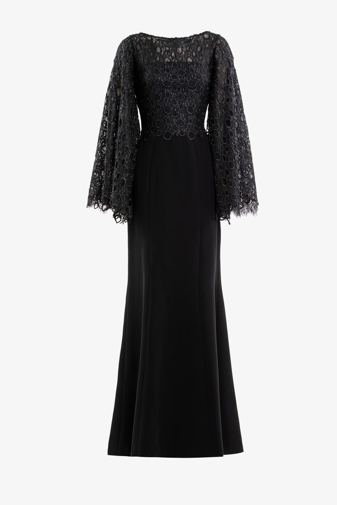 فستان طويل مطرز بالكامل مع رداء مطرز بالكامل