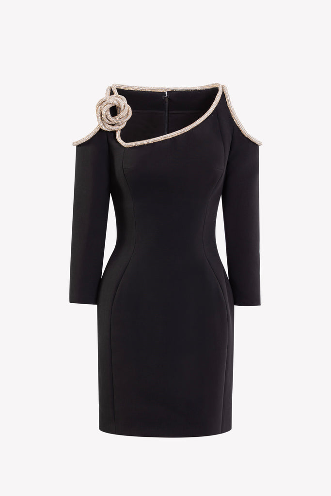 فستان قصير مزين بالكريستال