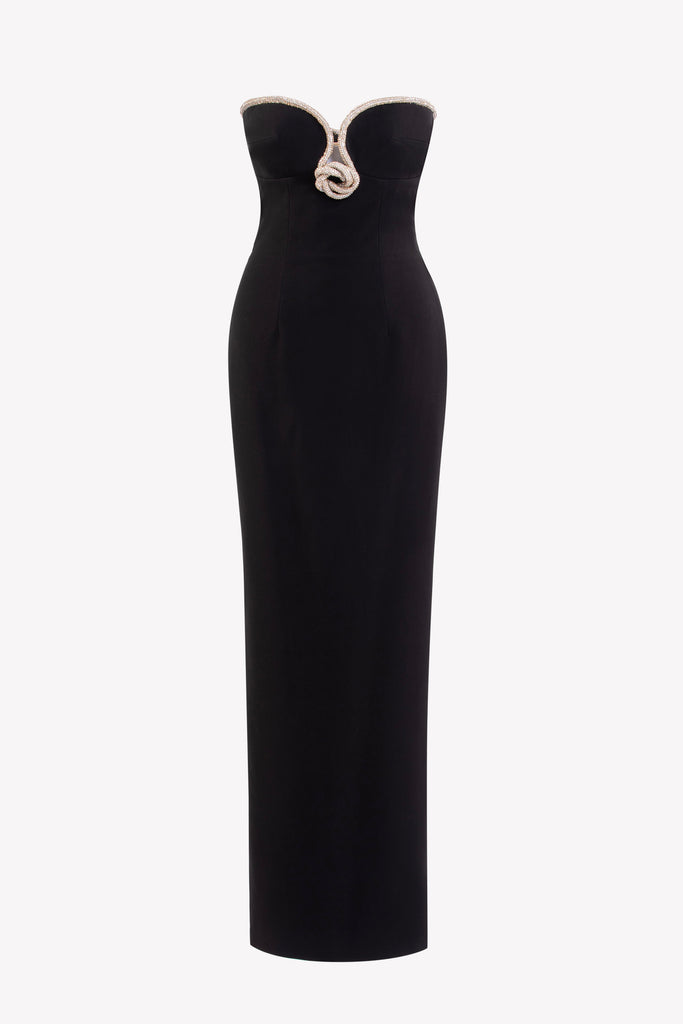فستان من الكريب بدون حمالات مطرز