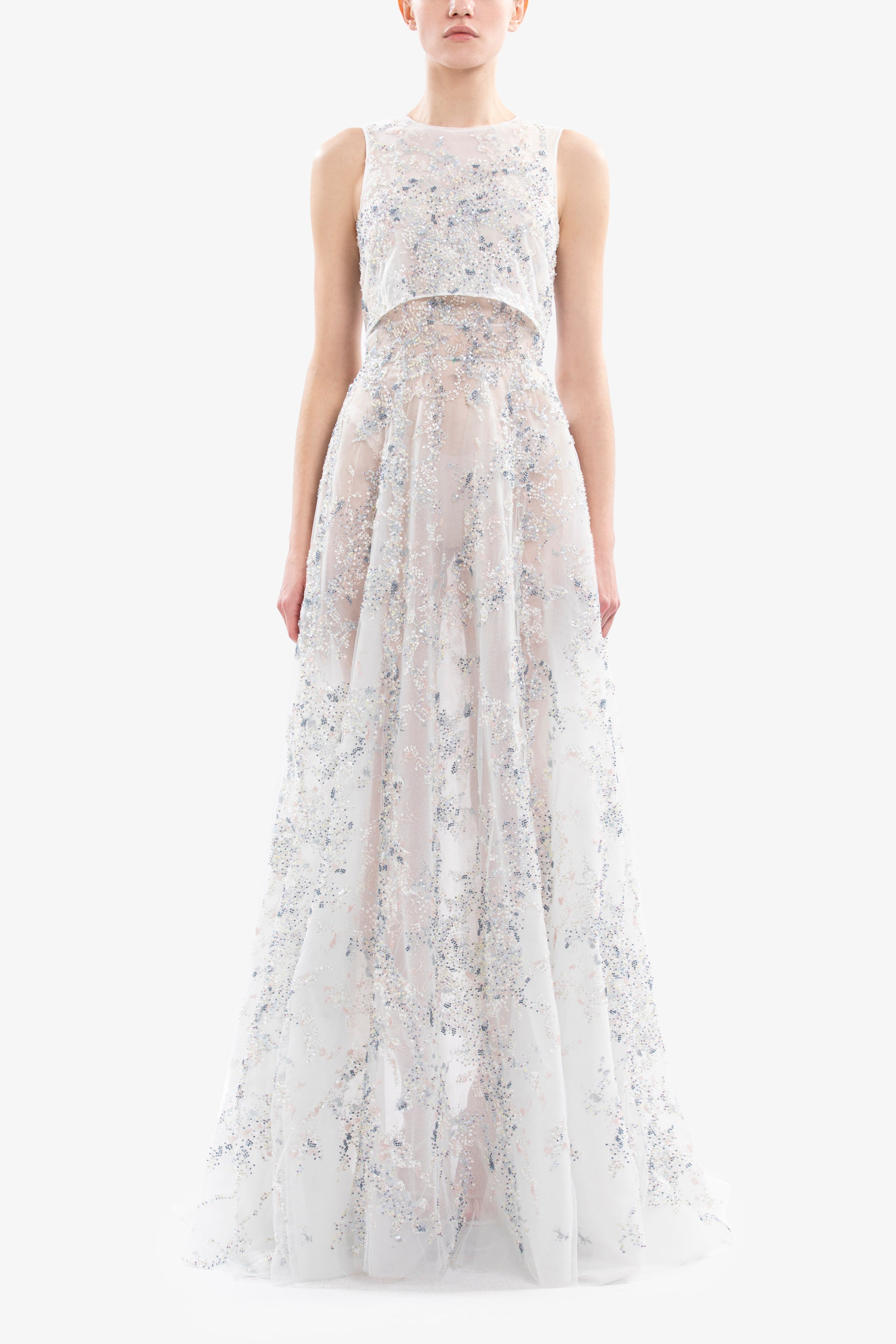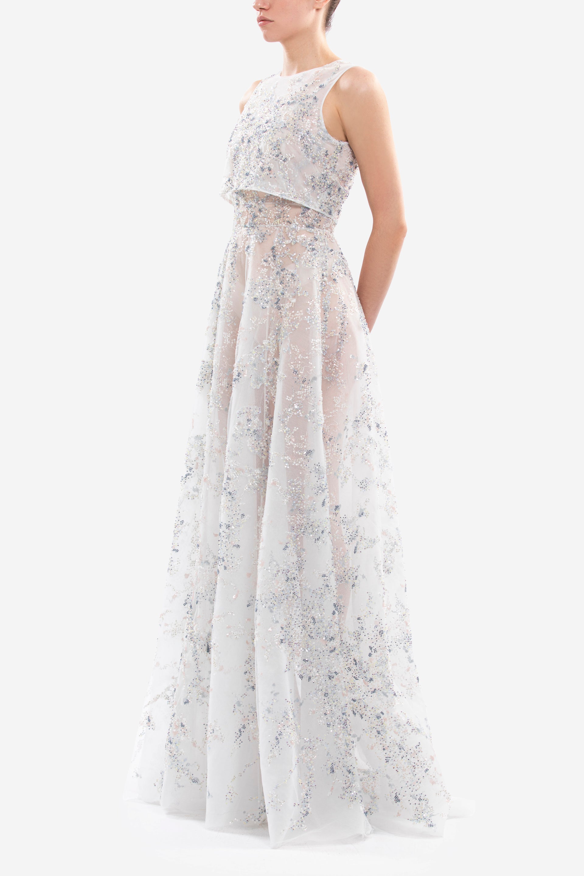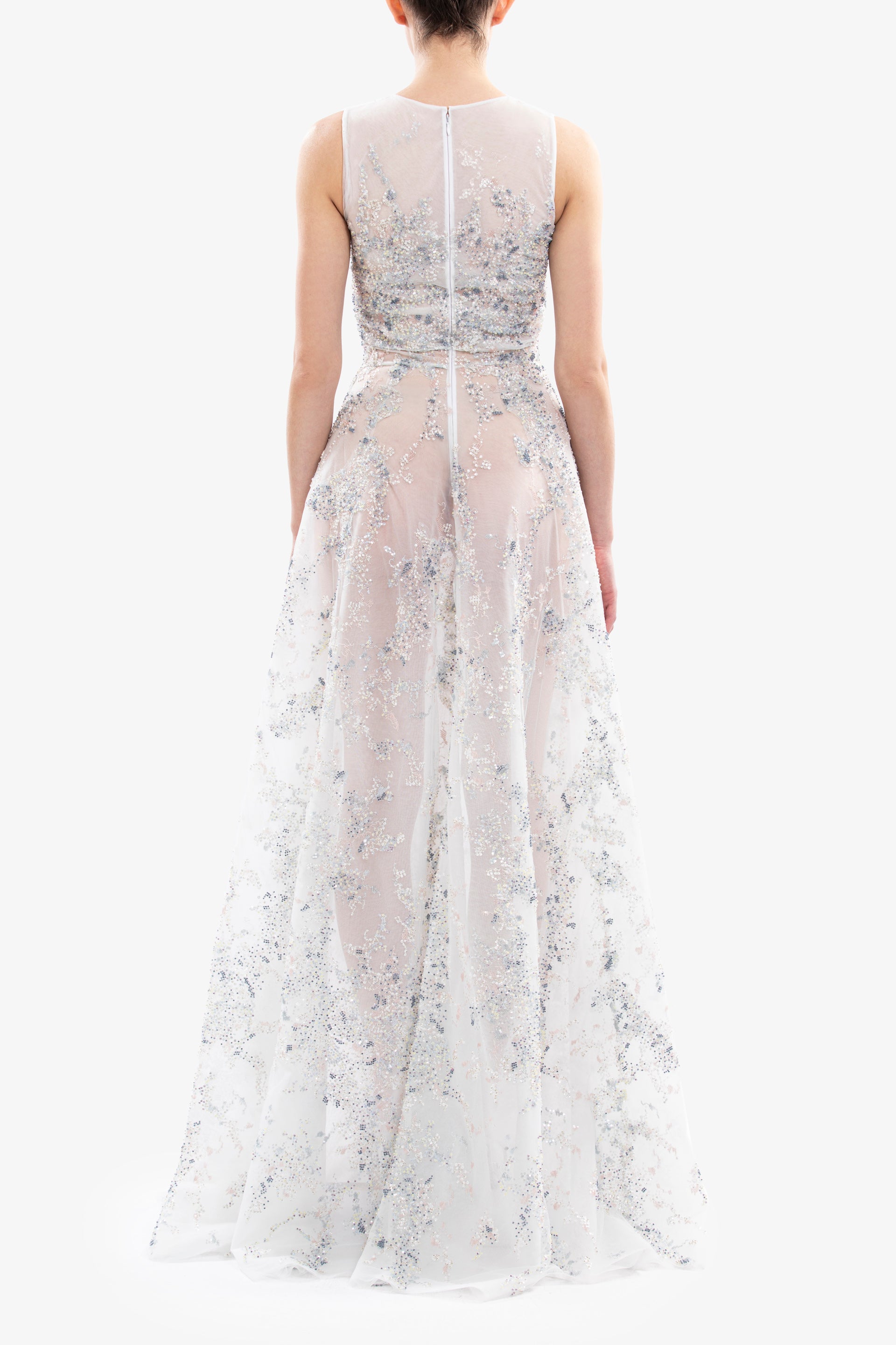 هذا الفستان المطرز باللون الأبيض المائل للصفرة مزين بخرز ملون في جميع أنحائه، مما يضفي لمسة نابضة بالحياة على تصميمه. يتميز بتنورة على شكل حرف A تمنحه مظهرًا أنيقًا وتسهل الحركة. الجمع بين التطريز المعقد والخرز المرح يجعل هذا الفستان خيارًا مميزًا لأي مناسبة.