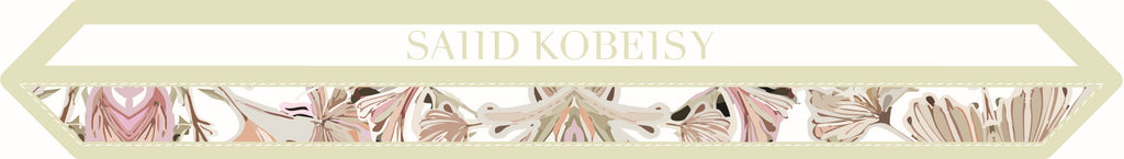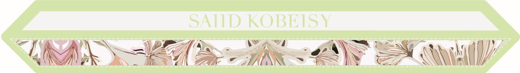 ارتقي بخزانة ملابسك مع هذا التويلي الحريري المستوحى من الهندباء بلون القصب. يتميز بتصميم زهور راقٍ بألوان زاهية ومقاس 80 × 5 سم. الجزء الخلفي مزين بنقشة "سعيد قبيسي" بسيطة لإضفاء لمسة أنيقة وراقية.