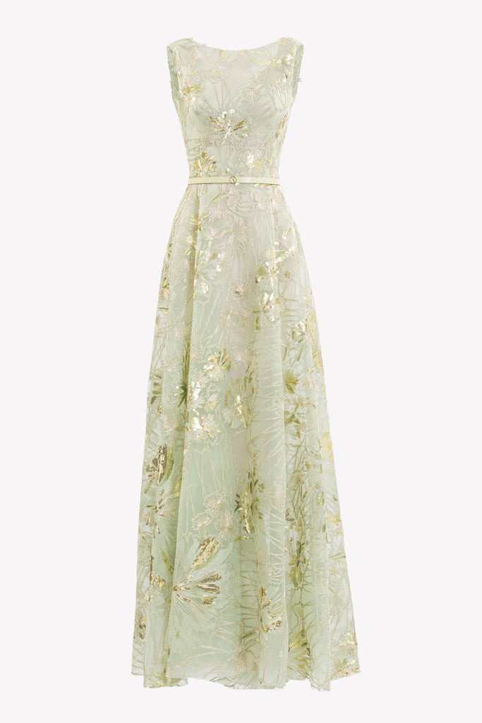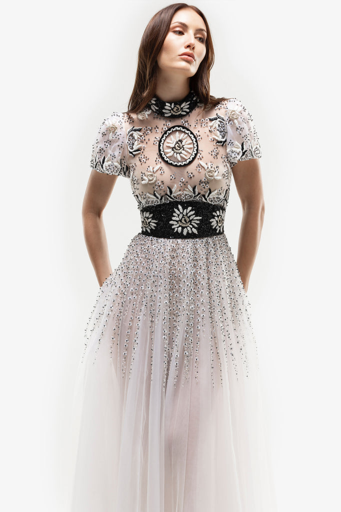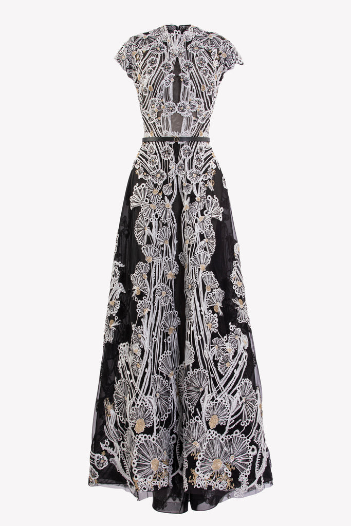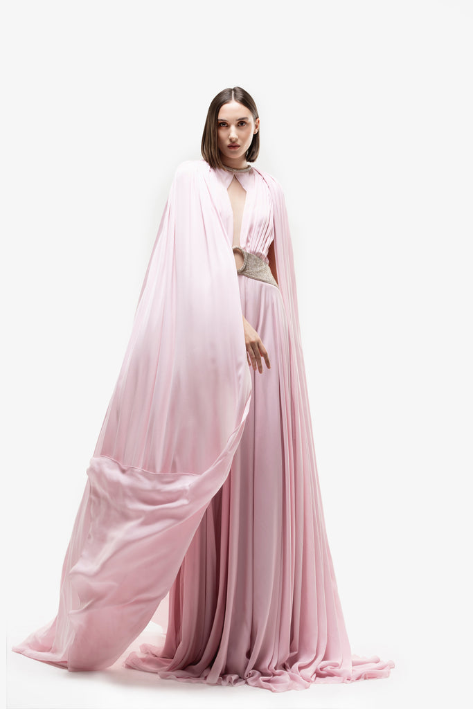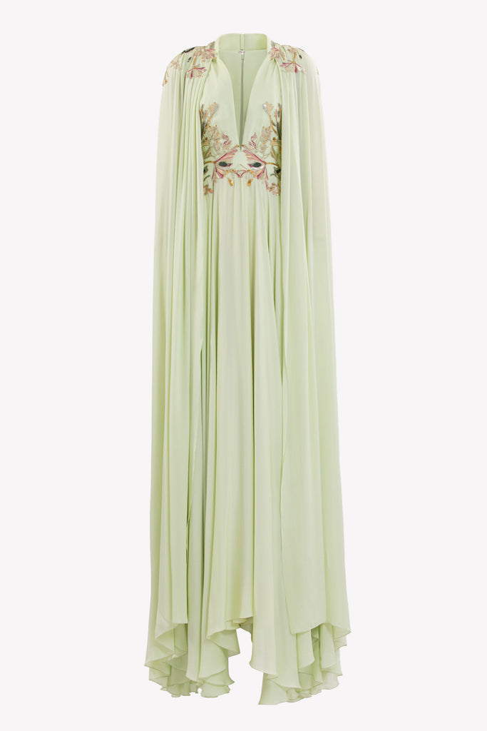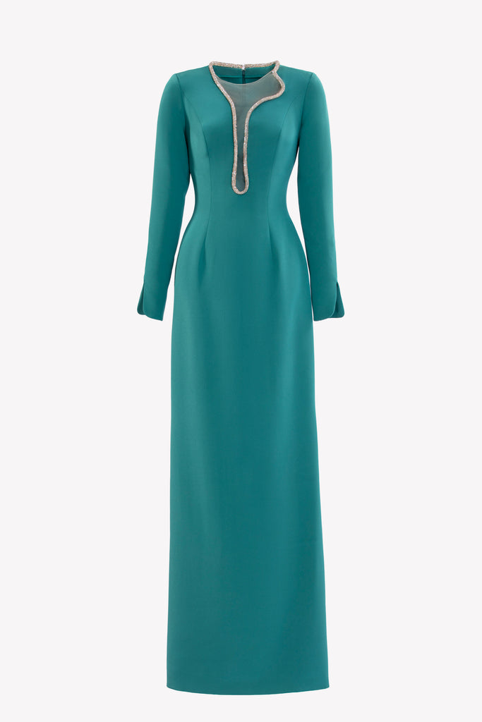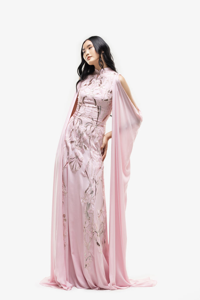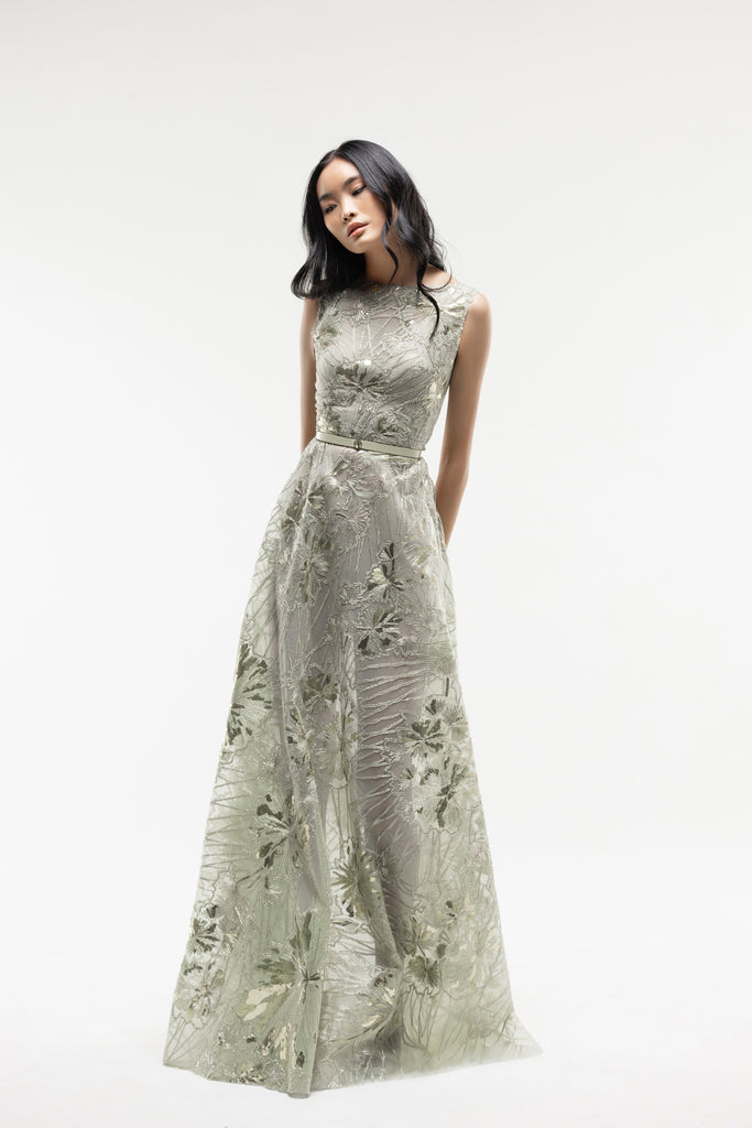 جمبسوت من الجاكار العاجي بدون أكمام بياقة قائمة وأزرار أمامية بأزرار من الأمام، ويتميز بقصّة ضيقة وشورت بطيات منظمة وجيوب جانبية وطول متوسط الفخذ.