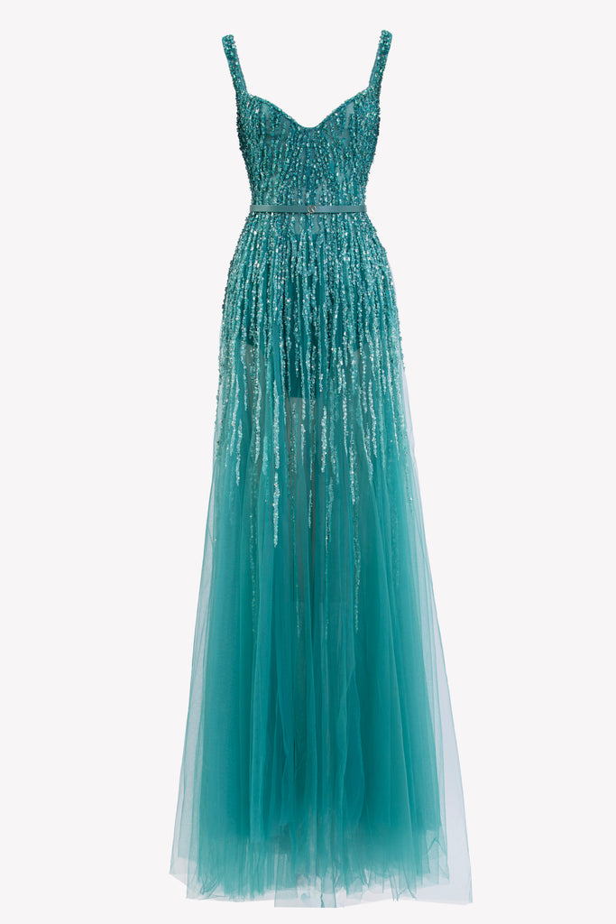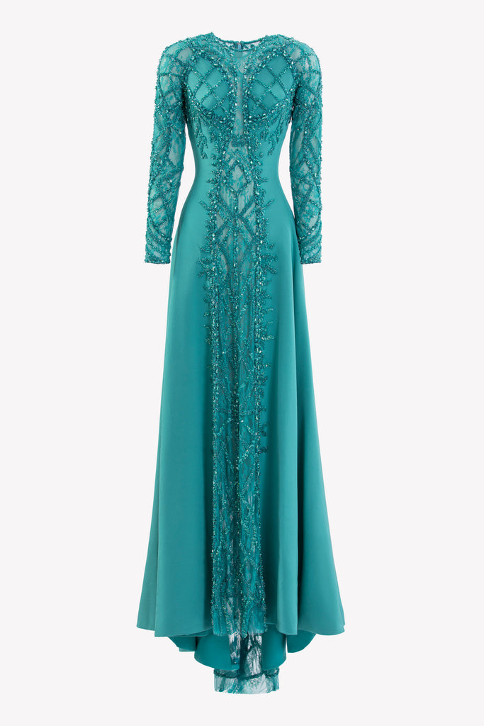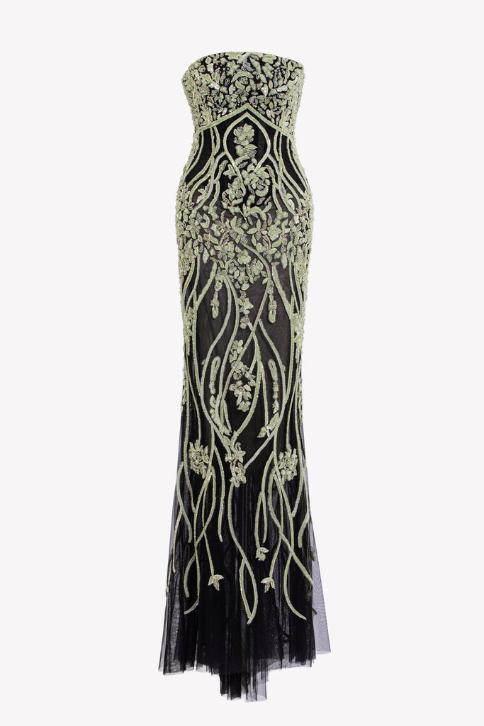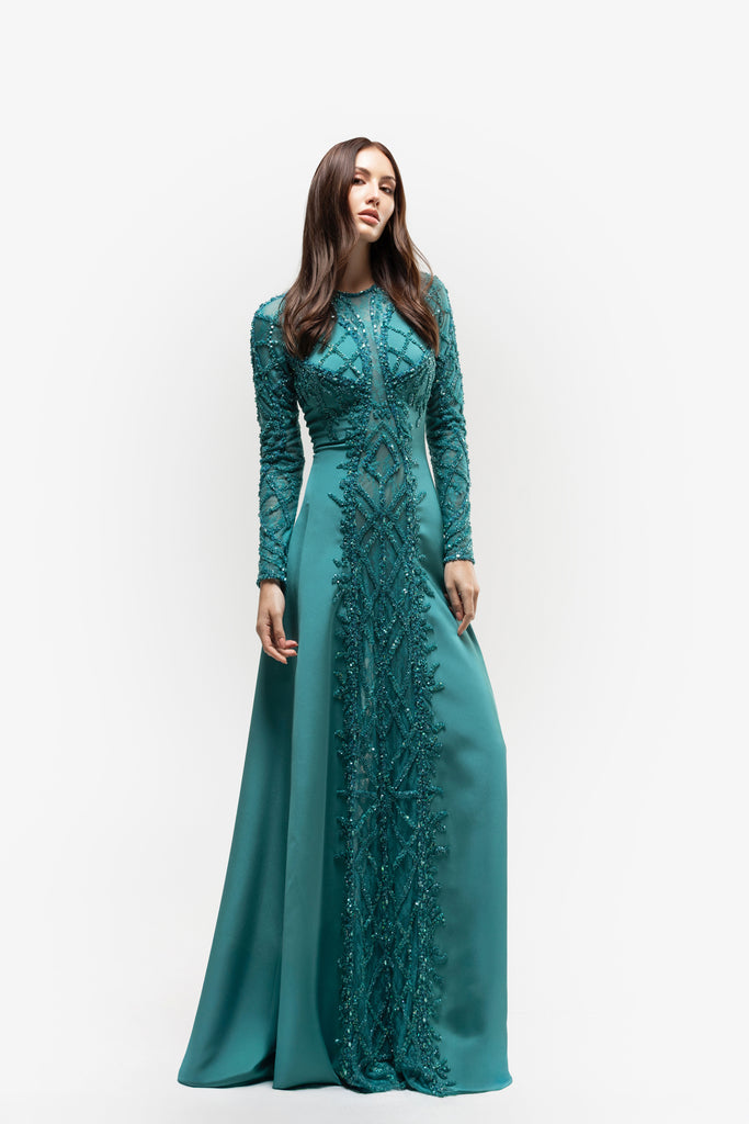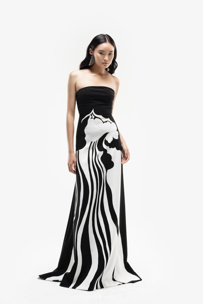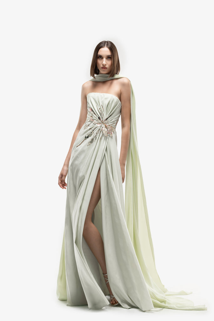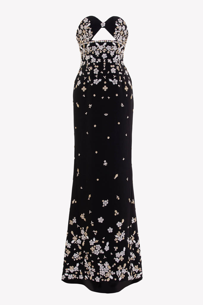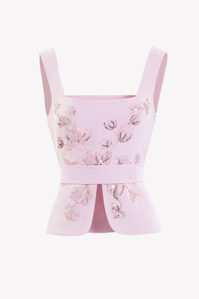 جمبسوت من الجاكار العاجي بدون أكمام بياقة قائمة وأزرار أمامية بأزرار من الأمام، ويتميز بقصّة ضيقة وشورت بطيات منظمة وجيوب جانبية وطول متوسط الفخذ.