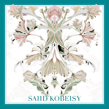 ارتقي بخزانة ملابسكِ مع هذا الوشاح المستوحى من الهندباء البرية من الكريب الجورجيت بلون زهرة الصبار. يتميز بمزيج متناغم من تدرجات اللون الوردي والبيج والأخضر مع تفاصيل متناسقة معقدة بقياس 50 × 50 سم.