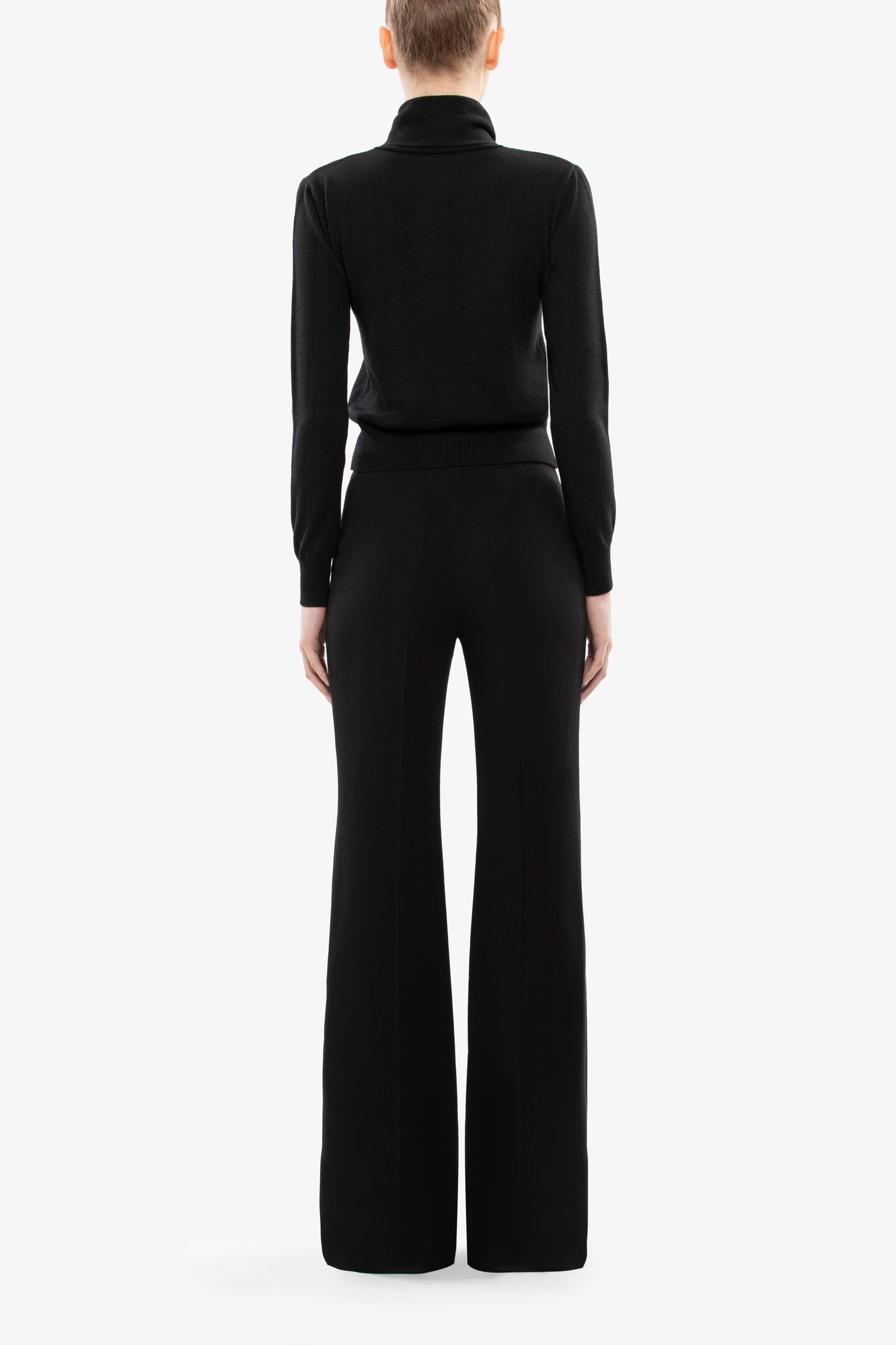 بنطلون بقصة مستقيمة من الكريب الأسود الداكن.